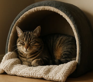 Enclosed and Cozy: Many cats prefer covered beds, cardboard boxes, or even a spot in a closet.